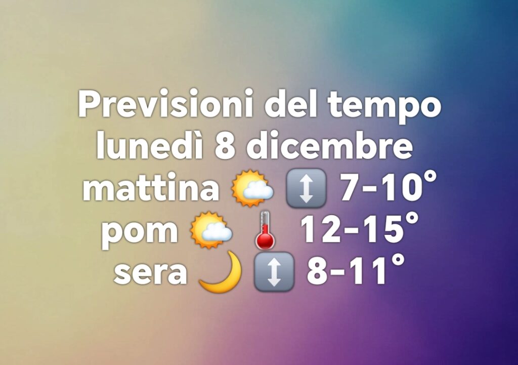 L’alta pressione comincerà a consolidarsi sulle nostre regioni, regalando una giornata di tempo stabile e soleggiato. Il maggior soleggiamento favorirà un aumento di un paio di gradi nei valori massimi diurni. Il maestrale sarà in attenuazione, rendendo più piacevoli le gite fuori porta e le passeggiate tra i mercatini natalizi allestiti nei tanti paesi di Puglia e Basilicata.