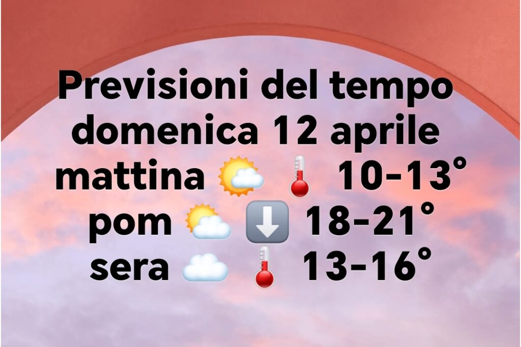 Domenica 12 aprile inizierà ancora con cieli sereni e qualche velatura. Nel corso della giornata il vento di scirocco tenderà a intensificarsi, con raffiche fino a 30-40 km/h sui settori centro-meridionali della Puglia. Dal pomeriggio e in serata avanzerà da ovest una nuvolosità innocua, che interesserà prima la Basilicata e successivamente la Puglia. Le temperature massime subiranno una lieve diminuzione nelle zone interne, mentre le minime risulteranno stazionarie o in leggero aumento.